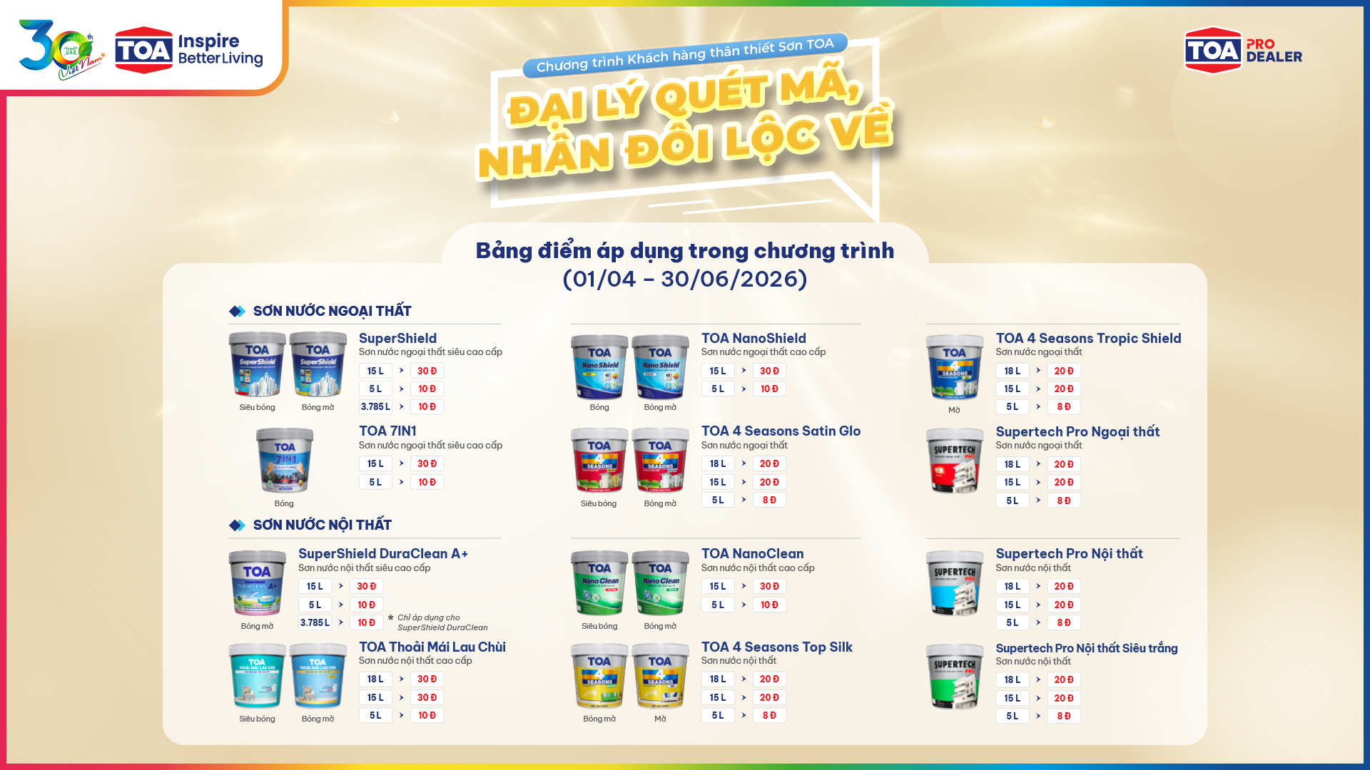 Ưu đãi hấp dẫn từ Sơn TOA: Đại lý quét mã, nhân đôi lộc về