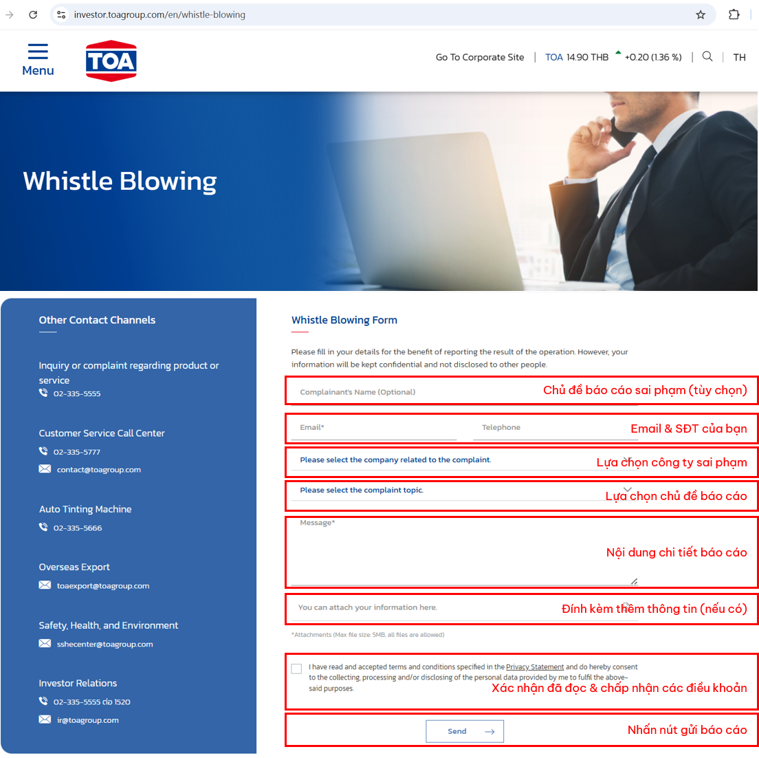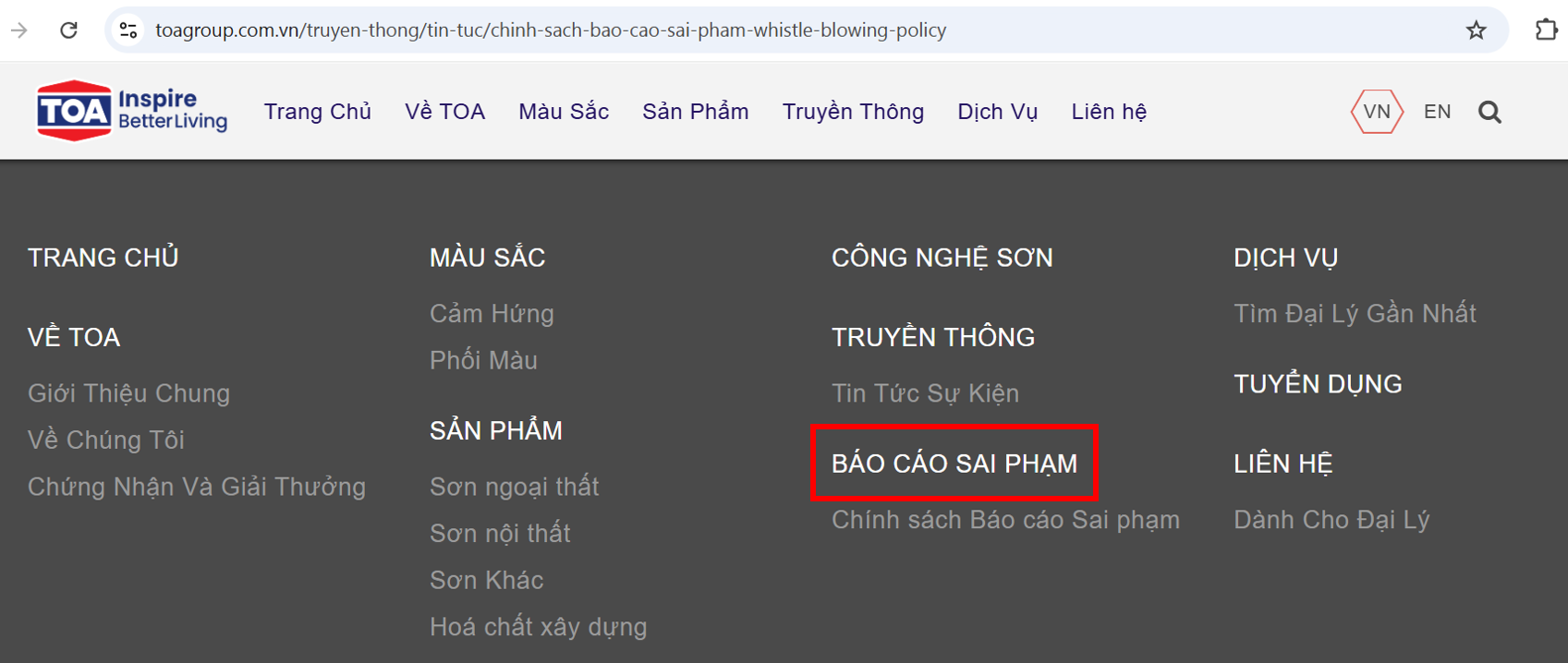 https://www.toagroup.com.vn hoặc https://investor.toagroup.com/en/whistle-blowing