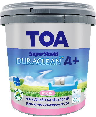 Nổi bật trong các sản phẩm của Sơn TOA Việt Nam là sơn nước nội thất siêu cao cấp SuperShield DuraClean A+. Sản phẩm được sản xuất từ nhựa Acrylic (sản xuất theo công nghệ Biomass - giúp giảm tiêu thụ nguyên liệu hóa thạch và bảo vệ môi trường) giúp giảm tiêu thụ nguyên liệu hóa thạch và bảo vệ môi trường. Công nghệ "Air Detoxify" mang đến chất lượng không khí trong nhà trong lành nhất, mùi rất nhẹ và loại bỏ Phoócmôn cho không khí trong nhà. Hơn nữa, màng sơn có khả năng kháng khuẩn lâu dài mà không gây tác hại cho con người. Hàm lượng chất hữu cơ bay hơi (VOCs) gần như bằng 0.