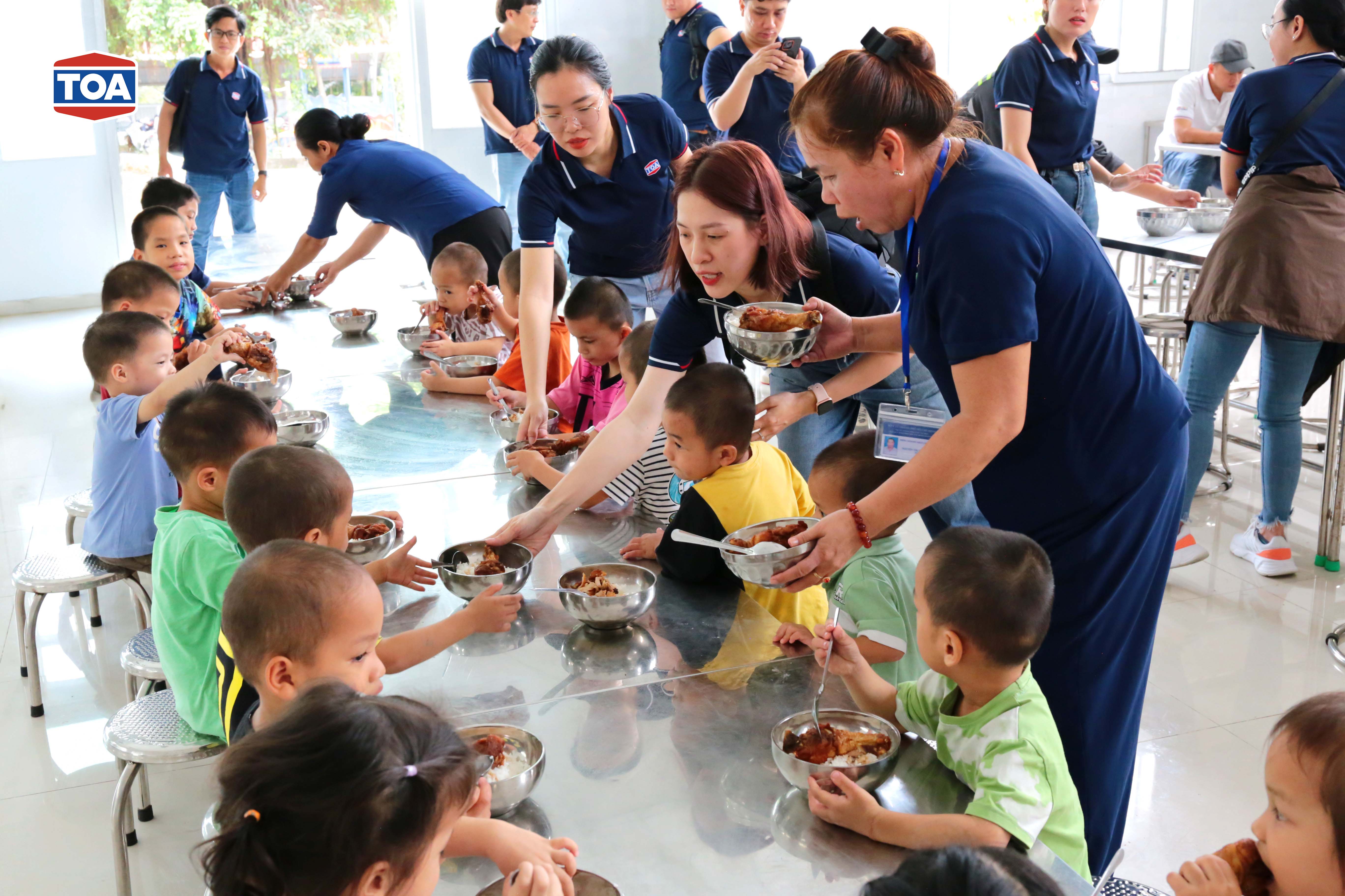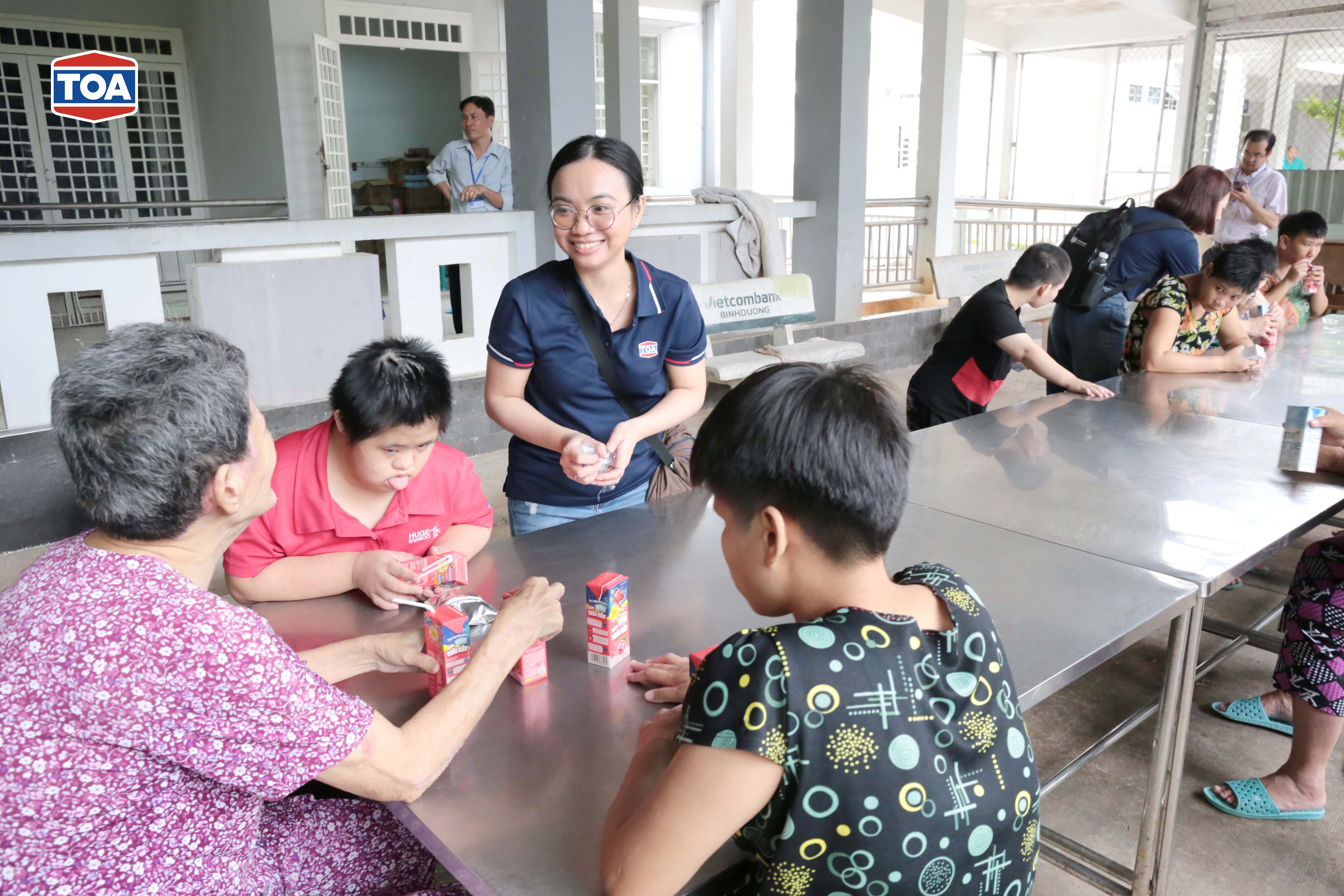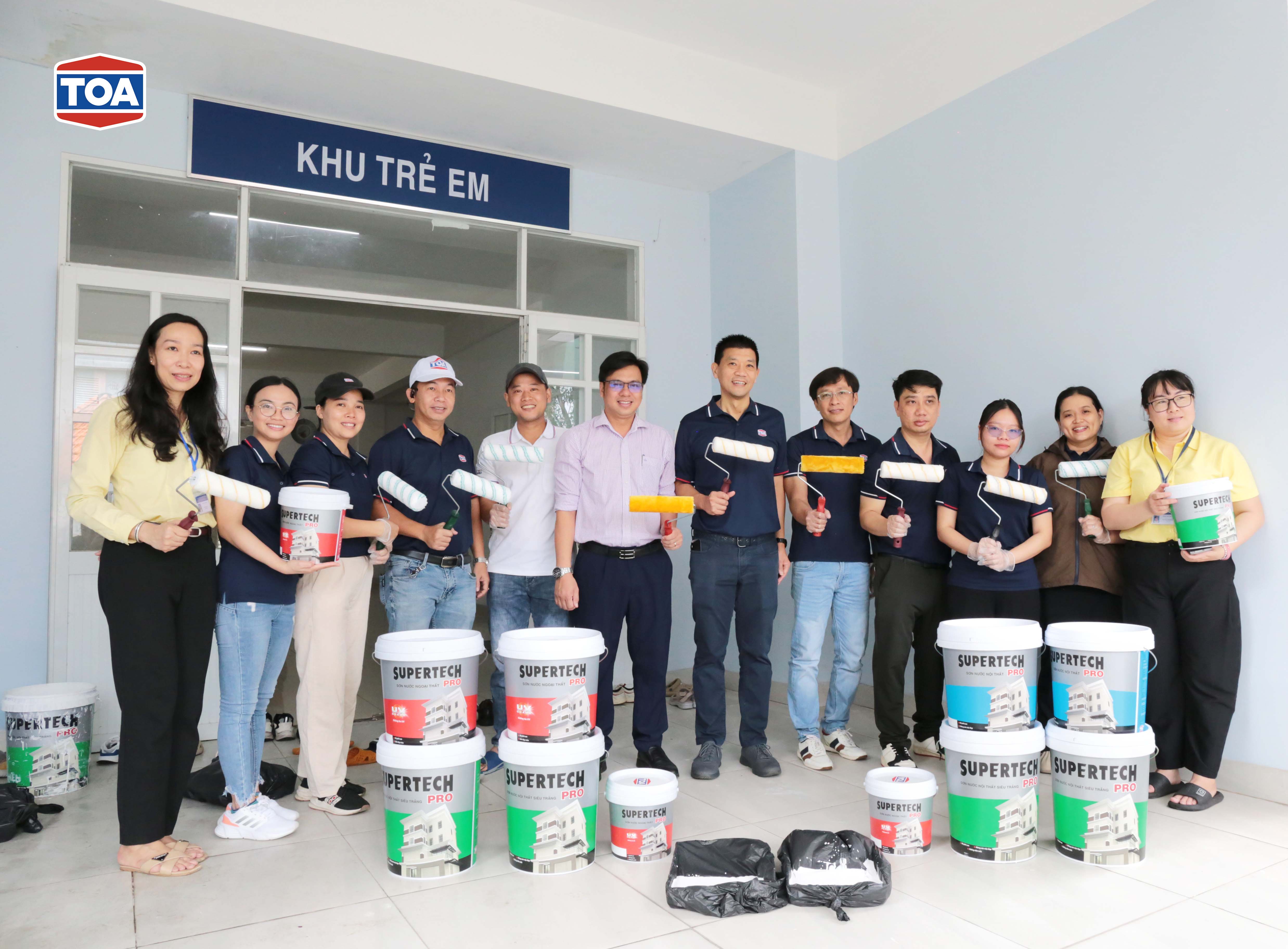 Không chỉ dừng lại ở việc trao tặng, tập thể nhân viên Sơn TOA Việt Nam đã trực tiếp tham gia lăn sơn, làm mới không gian sinh hoạt cho các em nhỏ. Những mảng tường cũ kỹ được khoác lên màu áo mới tươi sáng, mang lại diện mạo khang trang và tràn đầy sức sống.